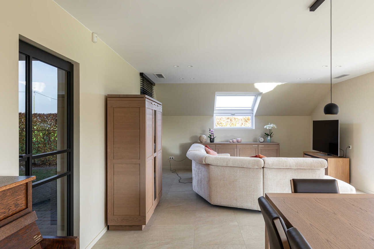 Bij de renovatie werd ook het comfortniveau naar een hoger niveau getild. De woning kreeg een vernieuwde vloerverwarming met isolatie, een airco-warmtepomp en een ventilatiesysteem. Zo combineert het gezin een aangenaam binnenklimaat met een lager energieverbruik.